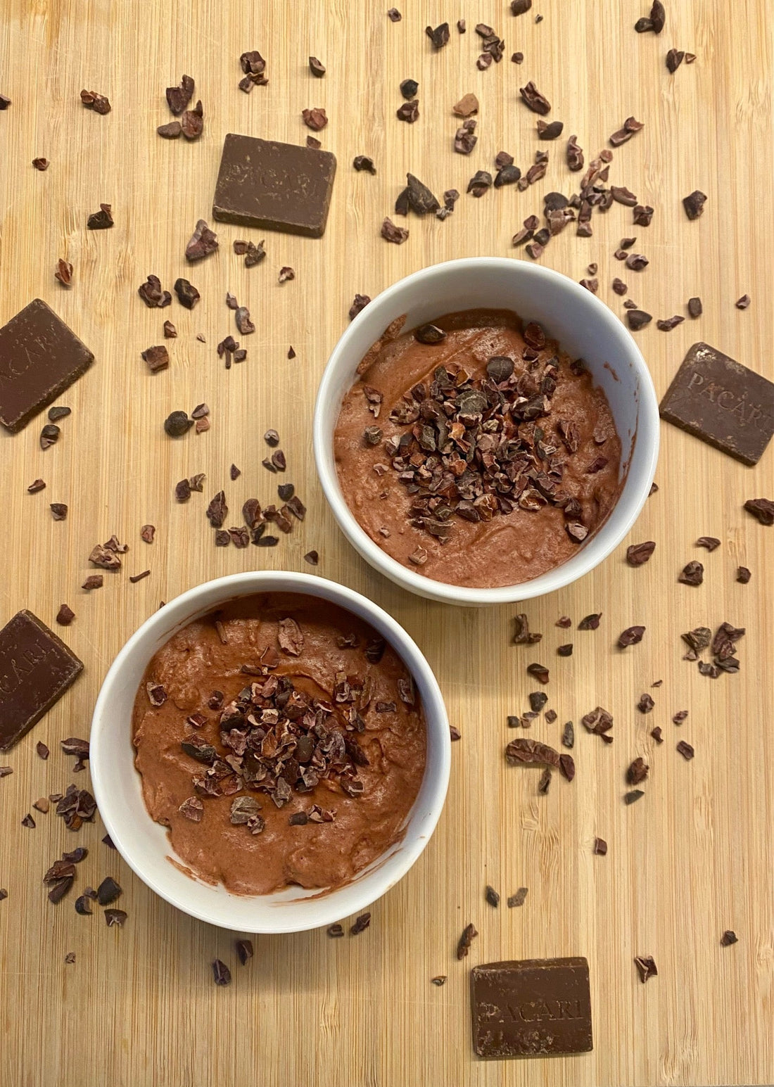 Das fertige Mousse au Chocolat mindestens drei Stunden kühlen und mit Paccari Kakaonibs servieren für den extra Crunch.
