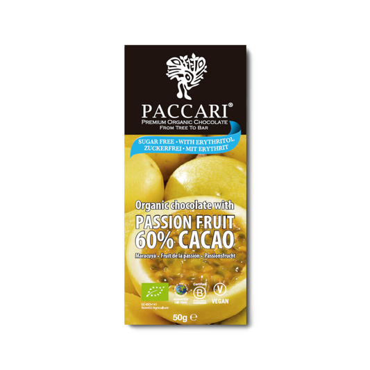 PACCARI | Zuckerfreie Bio Schokolade Maracuja | Ecuador | 60% Kakao