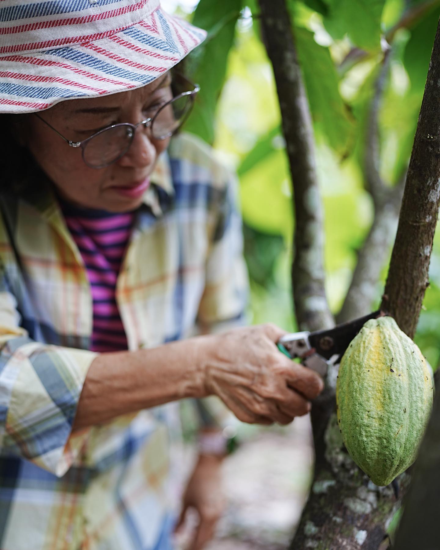 Hier bewirtschaften die Kleinbauern ihr Land nach dem traditionellen Anbausystem. Der Kakao wird gemeinsam mit Mangos, Bananen, Kokosnüssen und weiteren Früchten, sowie Gewürzen und Kräutern kultiviert, sodass ein widerstandsfähiges System mit hoher Artenvielfalt entsteht. Dafür brauchen sie weder Pestizide, noch müssen Bäume gefällt werden. Die einzelnen Erzeuger sind jedoch zu klein um sich z.B. Bio-zertifizieren zu lassen.